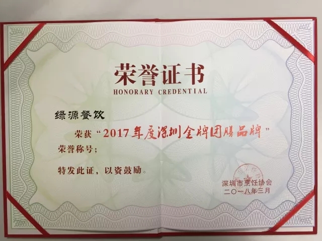 近日,深圳市烹飪協會第二屆第四次會員大會在深圳召開,會議對2017年度優秀會員單位進行了表彰,中廣核服務集團旗下深圳綠源餐飲管理有限公司從眾多團膳企業中脫穎而出,獲得“2017年度深圳金牌團膳品牌”榮譽稱號。