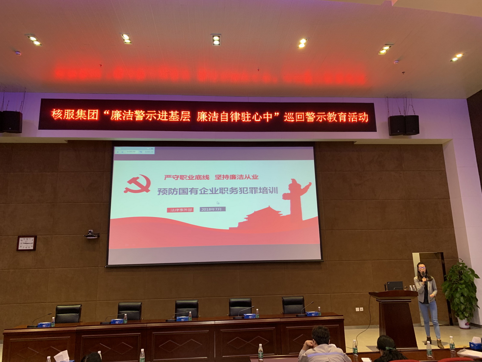 隨后,在廉潔警示教育環節,郭永慧結合當前核服集團黨風廉政建設和反腐敗形勢,深入剖析“3.28案”等典型職務犯罪及違規違紀案件,深刻總結分析案件發生的主客觀原因,號召大家要嚴守職業底線,認真踐行“廉潔從業是個人和家庭幸福與事業長青的基礎”的公司核心價值理念。